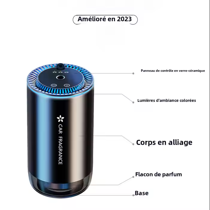 Contenu :  1 Instrument d'aromathérapie, 1 parfum, 1 câble de chargement , 1 manuel d'utilisation